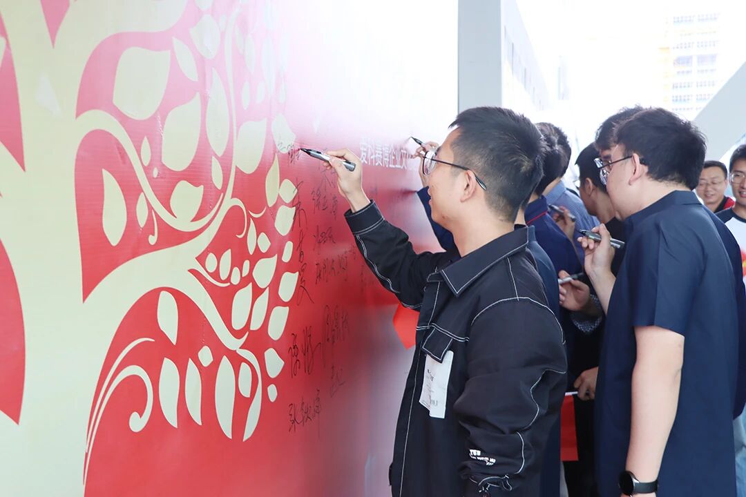升旗儀式后,愛科員工們在《愛科行動宣言》發布儀式簽到墻前熱情簽到、合影。一張張笑臉,一個個簽名,無不彰顯著全體員工對愛科賽博企業文化建設的積極參與和高度期待。
